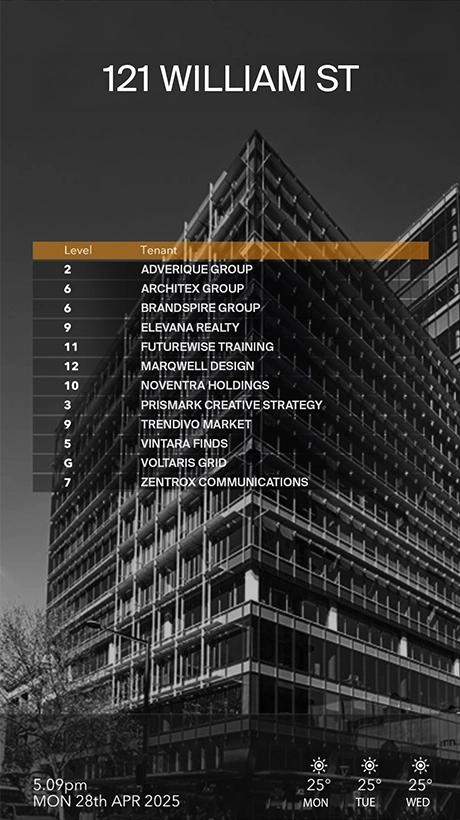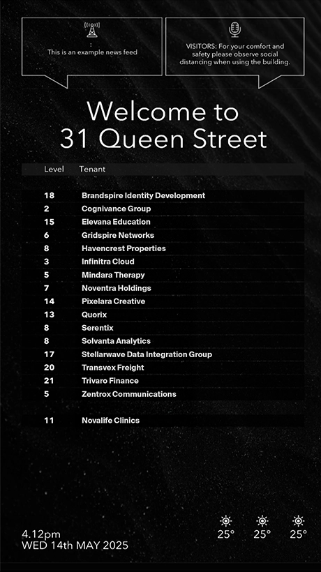 We engaged Sprocket for directory upgrades and were impressed by the seamless process and remote update capability. They’re now our preferred supplier across multiple assets, with flexible, customisable systems we confidently recommend to landlords throughout the Perth CBD.