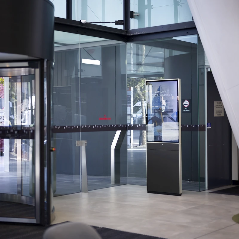 Visitors entering this busy Melbourne location on Lonsdale Street are greeted by two GO custom directories. Standing sentinel at either entrance of the open airy foyer they enhance flow and keeps things tidy. Built to run with minimal maintenance and made in Australia, it adds order and style without demanding attention. The GO software takes care of the rest.