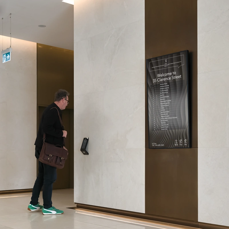 In the funky foyer of 35 Clarence Street the 55” GO Streamline directory acts as a digital anchor. Students and guests scan through campus listings with ease, thanks to the GO software’s fast, intuitive flow. The secure mount and sleek housing feel like part of the architecture. Built in Australia and built to last, it keeps pace with the campus’s daily demands—stylish, dependable, and low on fuss.